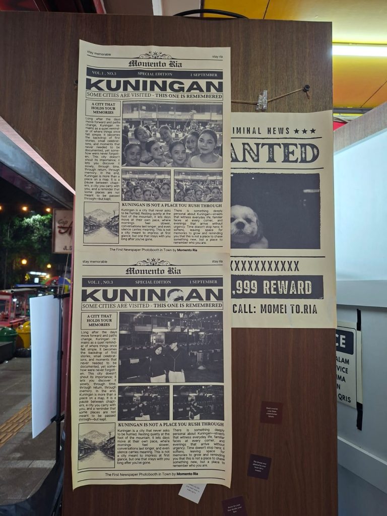 KUNINGANSATU.COM,- Di balik gemerlap lampu pertokoan di Jalan Siliwangi, sebuah photobox bergaya cetak koran menarik perhatian pengunjung. Berlokasi di ruko Ayam Geprek Siliwangi, usaha bernama Momentoria menawarkan pengalaman mengabadikan momen dengan konsep berbeda dan harga terjangkau.