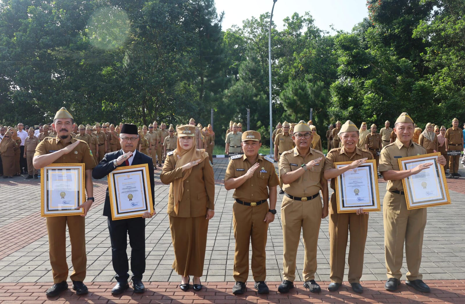 KUNINGANSATU.COM,- Pemerintah Kabupaten Kuningan memberikan apresiasi kepada sejumlah perangkat daerah yang berhasil mencatatkan kinerja terbaik dalam penilaian Indeks Reformasi Birokrasi (RB) Tahun 2025. Penyerahan penghargaan tersebut dilaksanakan pada Senin (20/04/2026) dan dirangkaikan dalam kegiatan apel pagi di Halaman Setda, Kompleks Islamic Center Kuningan.