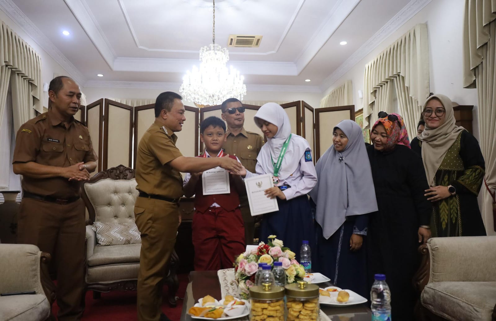 KUNINGANSATU.COM,- Bupati Kuningan, Dr. H. Dian Rachmat Yanuar, M.Si, memberikan apresiasi khusus kepada dua pelajar berprestasi yang berhasil mengharumkan nama daerah di ajang Olimpiade Matematika tingkat internasional. Penghargaan tersebut disampaikan dalam kegiatan di Pendopo Bupati Kuningan, Senin (20/04/2026).