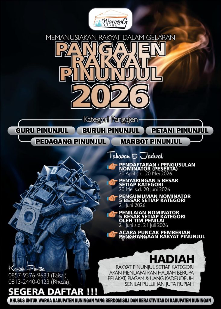 Sebagai informasi, Pangajen Rakyat Pinunjul Taun 2026 merupakan ajang penghargaan bagi individu inspiratif di Kabupaten Kuningan yang, meskipun hidup dalam keterbatasan, mampu menjadi “pahlawan” bagi keluarga dan lingkungannya.