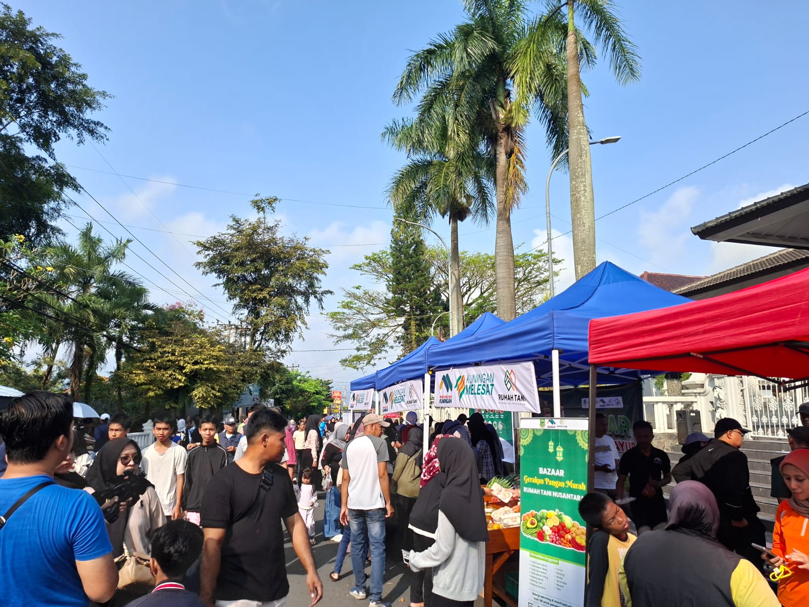 KUNINGANSATU.COM,- Bazar pangan murah dan segar yang digelar di kawasan Car Free Day (CFD) depan Pendopo Kabupaten Kuningan, Minggu (19/4/2026), disambut antusias masyarakat. Sejak pagi, warga tampak memadati lapak-lapak yang menyediakan berbagai kebutuhan pokok dengan harga terjangkau.