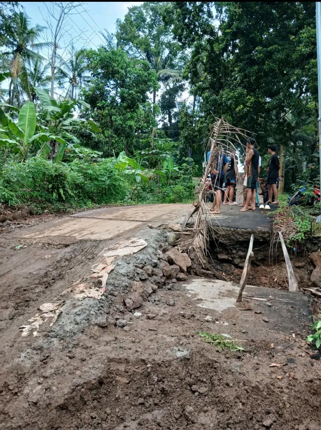 “Kalau kita lihat di lapangan, ini bukan sekadar kerusakan biasa. Pergeseran tanahnya cukup besar, bahkan sebelum titik jalan putus, lahan di sekitarnya sudah terbelah dan turun,” ujar Dian saat meninjau lokasi.