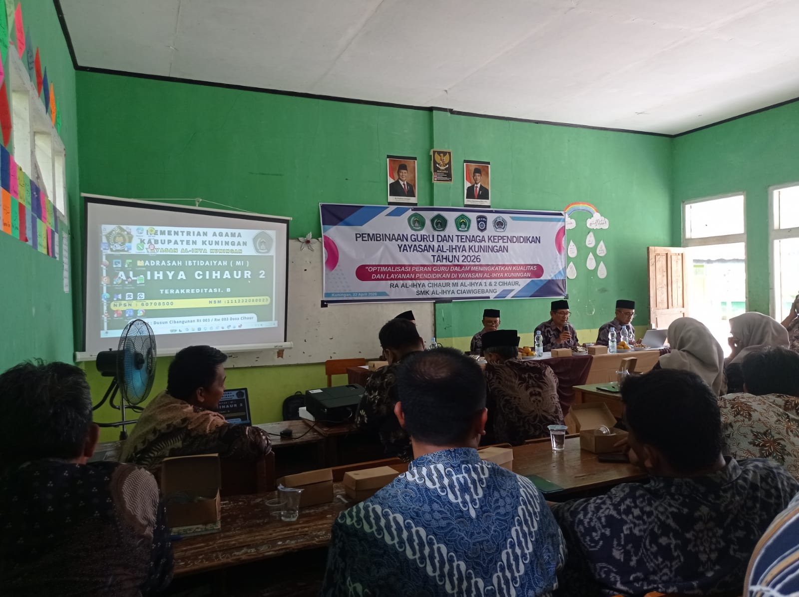 KUNINGANSATU.COM,-Upaya peningkatan mutu pendidikan terus dilakukan Yayasan Al Ihya melalui kegiatan pembinaan guru dan tenaga kependidikan yang digelar pada Rabu (22/4/2026) di Aula MI Al Ihya Cihaur. Kegiatan ini menjadi langkah konkret dalam mengoptimalkan peran tenaga pendidik agar lebih adaptif dan responsif terhadap kebutuhan peserta didik.